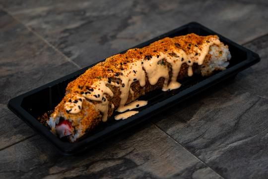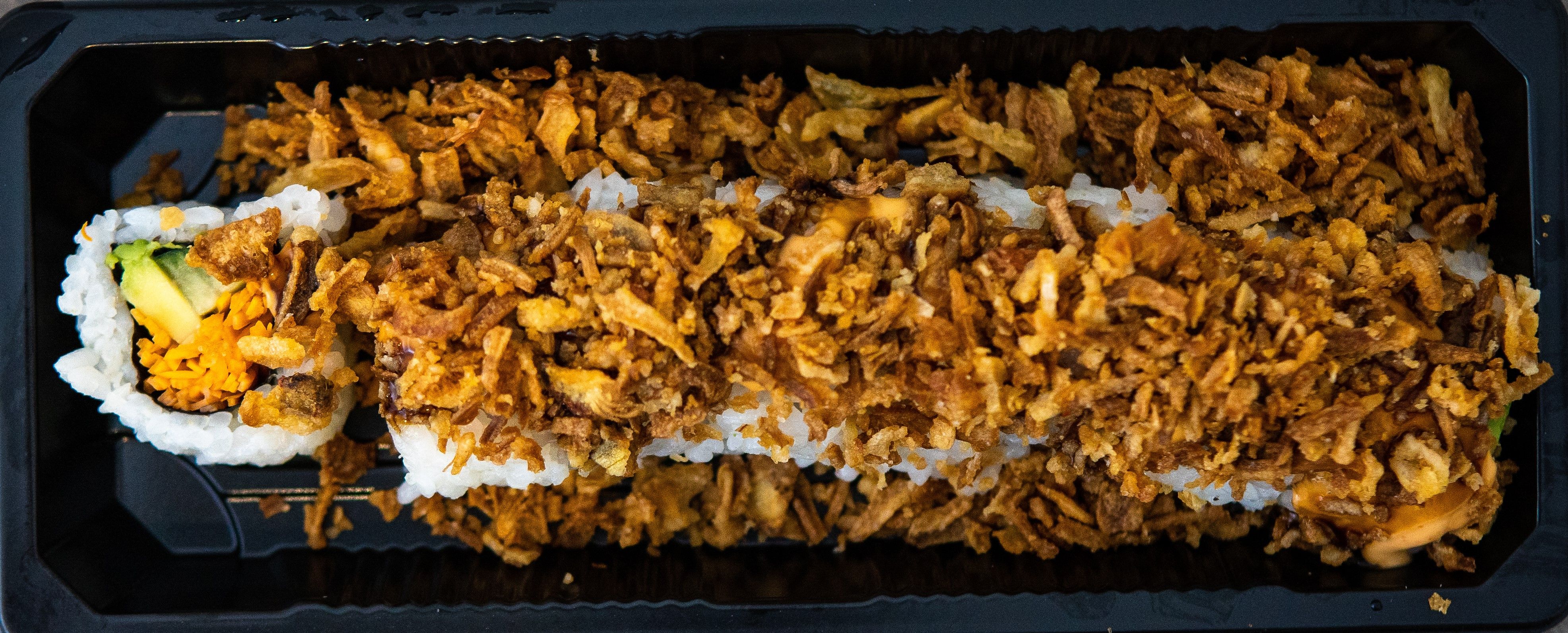 Fried Prawn, Avocado, Cucumber, Lettuce, Fried Onion.