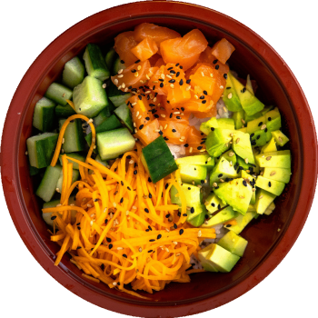Salmon, Avocado, Sesame Seeds, Rice, Nori.