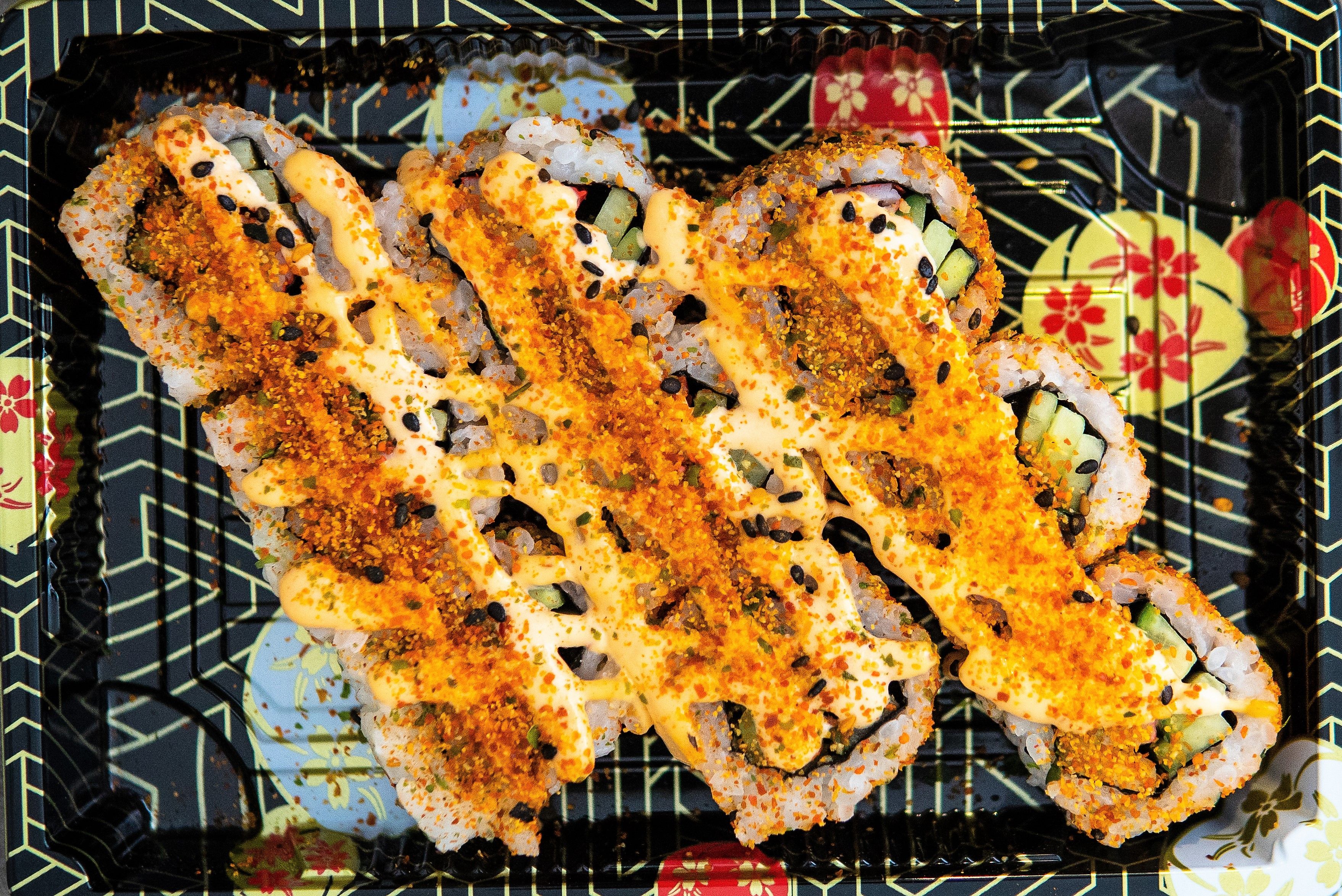Crispy Chicken, Cucumber, Spring Onion, Rice, Nori.