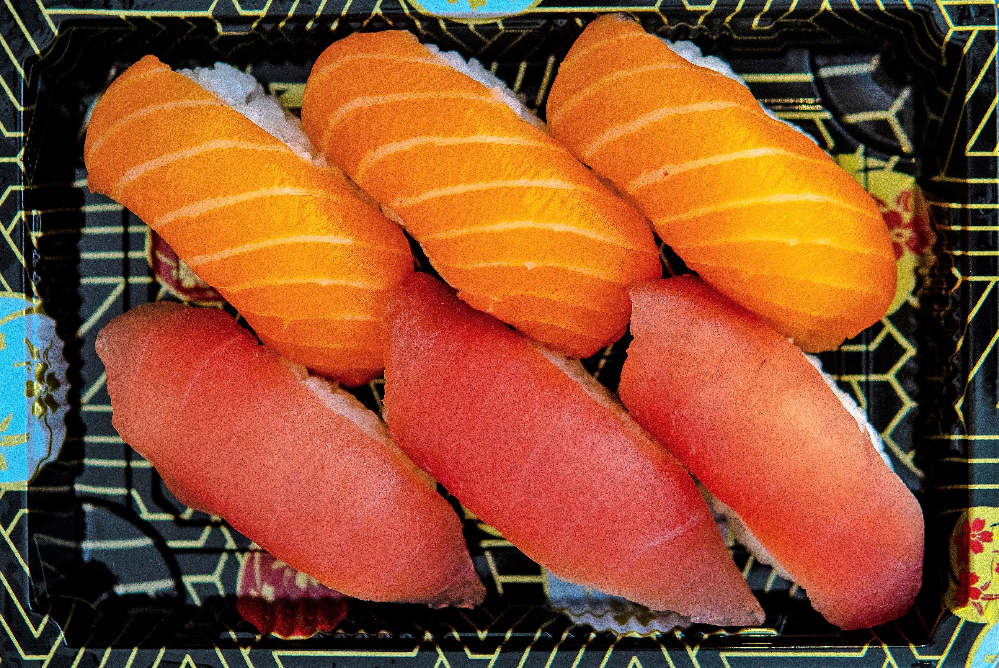 3 Salmon Nigiri, 2 Tuna Nigiri, 1 Shrimp Nigiri, 3 Salmon Avocado Roll