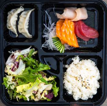 Hamachi, Salmon, Tuna, Chicken, Lettuce, Rice, Sesame Seeds, Mirin, Salt, Sugar, Vinegar