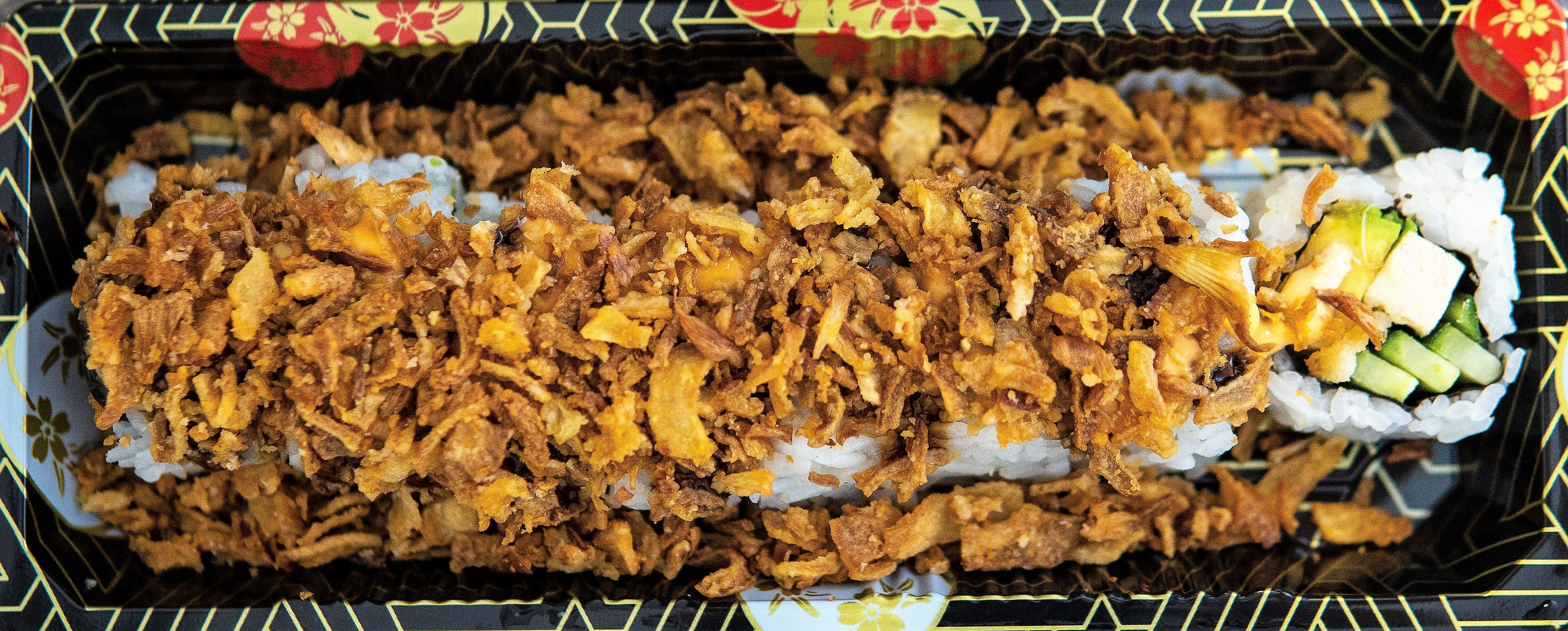 Crispy Chicken, Cucumber, Spring Onion, Rice, Nori.