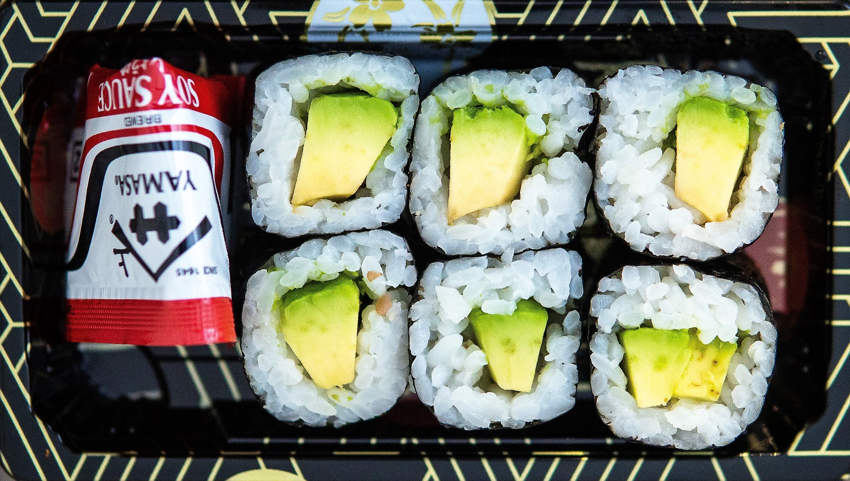 12 Avocado Nigiri, 6 Avocado Hosomaki, 6 Cucumber Hosomaki, 6 Kimchi Hosomaki, 6 Pickle Radish Hosomaki, 4 Wakami Gonkan, 4 Inari